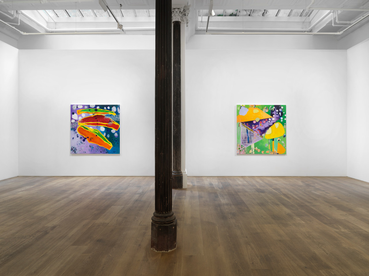 Throughout her career Hawkins has synthesized a commitment to abstraction and an interest in scientific concepts. Since the 1990s, her paintings have increasingly utilized imagery pulled from the observable world, her paint congealing into the almost-recognizable shapes of things–gesticulating organic forms that resemble cells under a microscope. In Gwynfor's Soup, or The Proximity of Matter, Hawkins seems to prove that abstraction is already always all around us. Her new series illustrates how the intertextual relationships that emerge between contours, gaps, and fugitive forms are capable of constituting an ecosystem on the surface of the canvas that is very much alive.