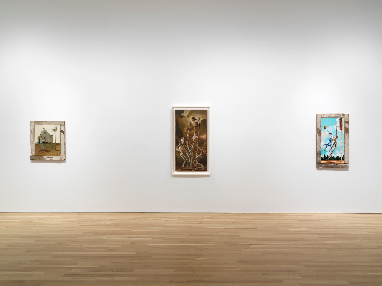 In his paintings, Barnes animates the lyricism of the human body in moments of athleticism and play. Barnes’ sinuous figures were inspired by both the Italian Mannerists and twentieth-century American masters, such as Thomas Hart Benton, Andrew Wyeth, Norman Rockwell, George Bellows and Charles White. Born and raised in Durham, North Carolina, at the height of the Jim Crow era, Barnes’ interest in art was cultivated by his mother, the housekeeper for Durham attorney Frank L. Fuller, Jr. Though segregation barred him from visiting museums as a child, Barnes was able to read art books at Fuller’s home before studying painting at North Carolina Central University (formerly North Carolina College) on a full athletic scholarship.