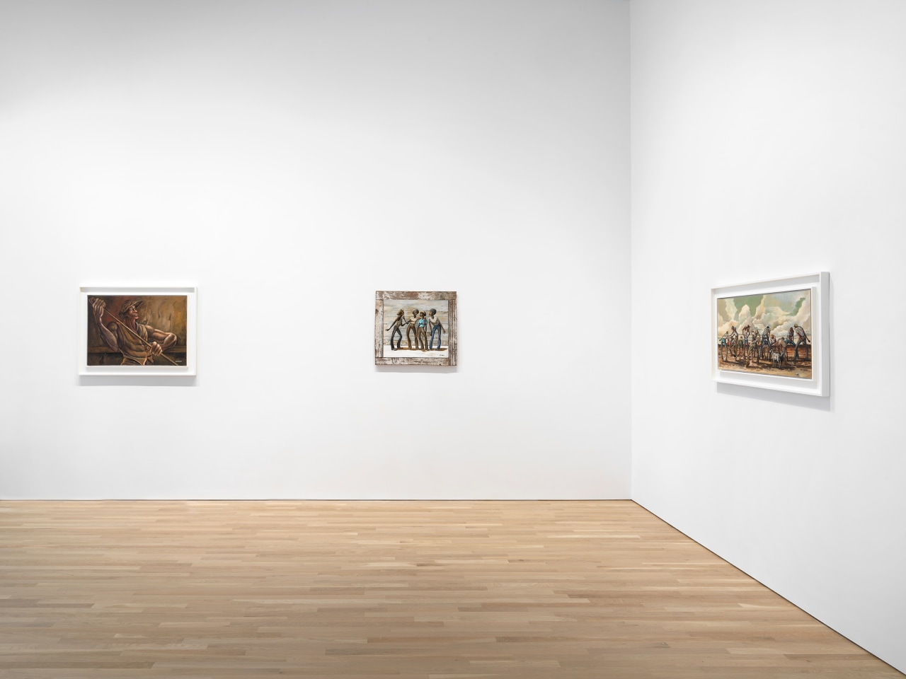 Recent solo exhibitions of Barnes’ work include Ernie Barnes: Where Music and Soul Live, UTA Artist Space, Los Angeles (2023); Ernie Barnes, Andrew Kreps Gallery, organized with Ortuzar Projects, New York (2021); Liberating Humanity from Within, UTA Artists Space, Los Angeles (2020); Ernie Barnes: A Retrospective, California African American Museum, Los Angeles (2019); and The North Carolina Roots of Artist Ernie Barnes, North Carolina Museum of History, Raleigh, North Carolina (2018-2019), among others. His work has been featured in institutional survey exhibitions including Giants: Art from the Dean Collection of Swiss Beatz and Alicia Keys, Brooklyn Museum, New York (2024); Dix and the Present, Deichtorhallen Hamburg, Hamburg, Germany (2023); Scrimmage: Football in American Art from The Civil War to The Present, Figge Museum of Art, Davenport, Iowa and Canton Museum of Art, Canton, Ohio (2017), Jordan Schnitzer Museum of Art, Eugene, Oregon (2016), University Art Museum at Colorado State University, Fort Collins, Colorado (2015); Visual Voice, Riverside Art Museum, Riverside, California (2016); I Got Rhythm: Art & Jazz Since 1920, Kunstmuseum Stuttgart, Stuttgart, Germany (2015). Barnes’ work is currently held in the permanent collections of the California African American Museum, Los Angeles; Pro Football Hall of Fame, Canton, Ohio; Brigham Young University Museum of Art, Provo, Utah; North Carolina Central University Art Museum, Durham, North Carolina; and the American Sport Art Museum and Archives, Daphne, Alabama, among others.