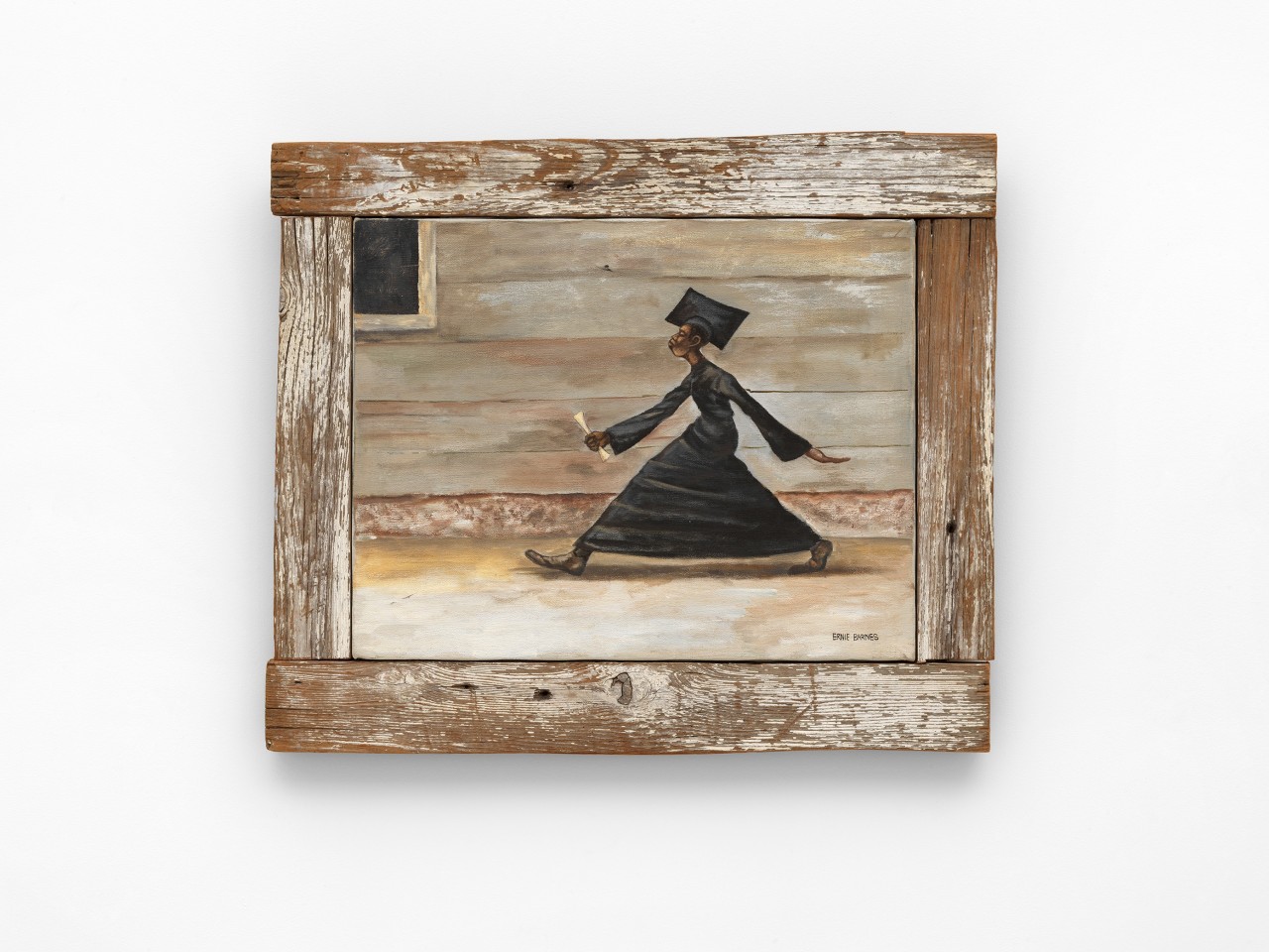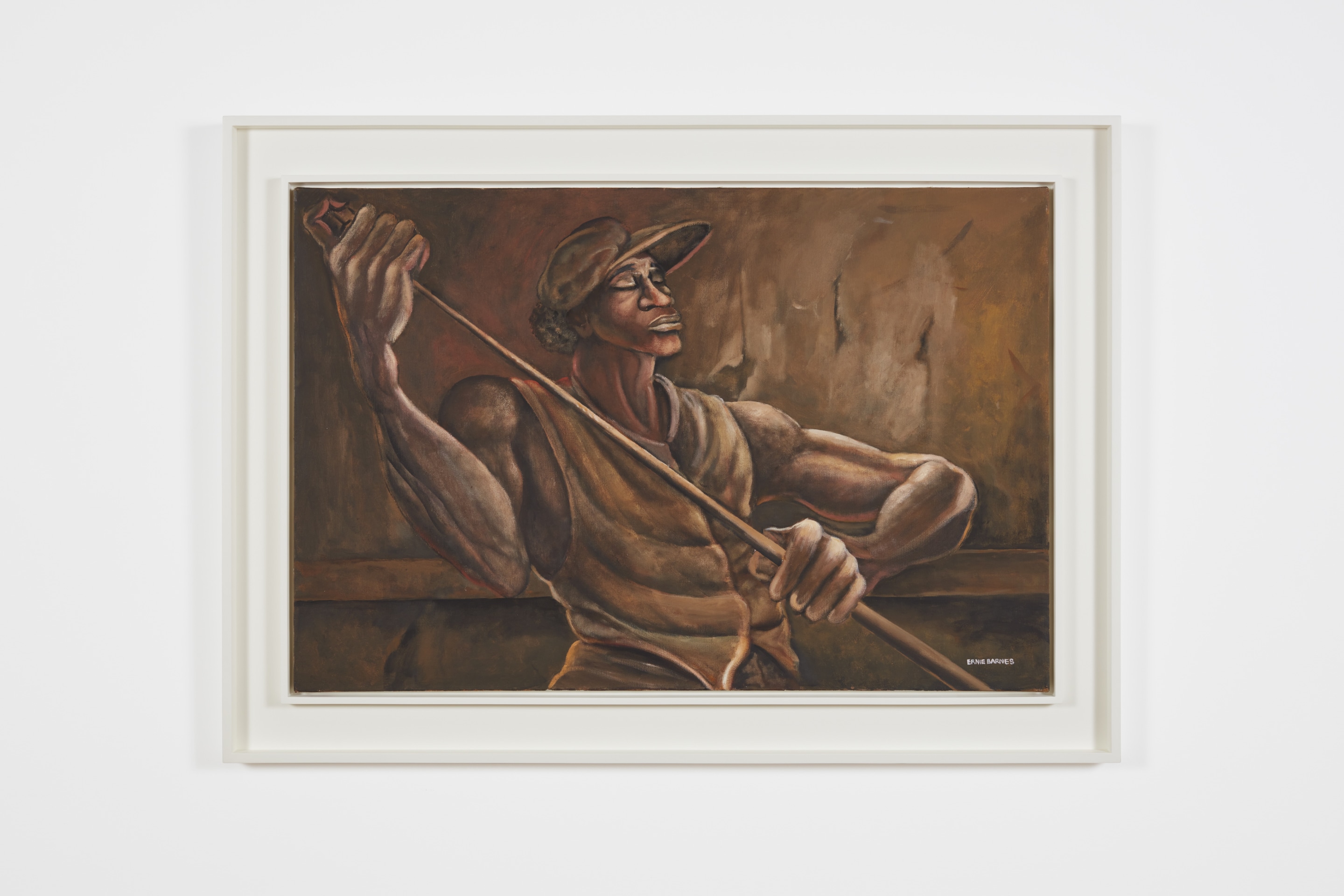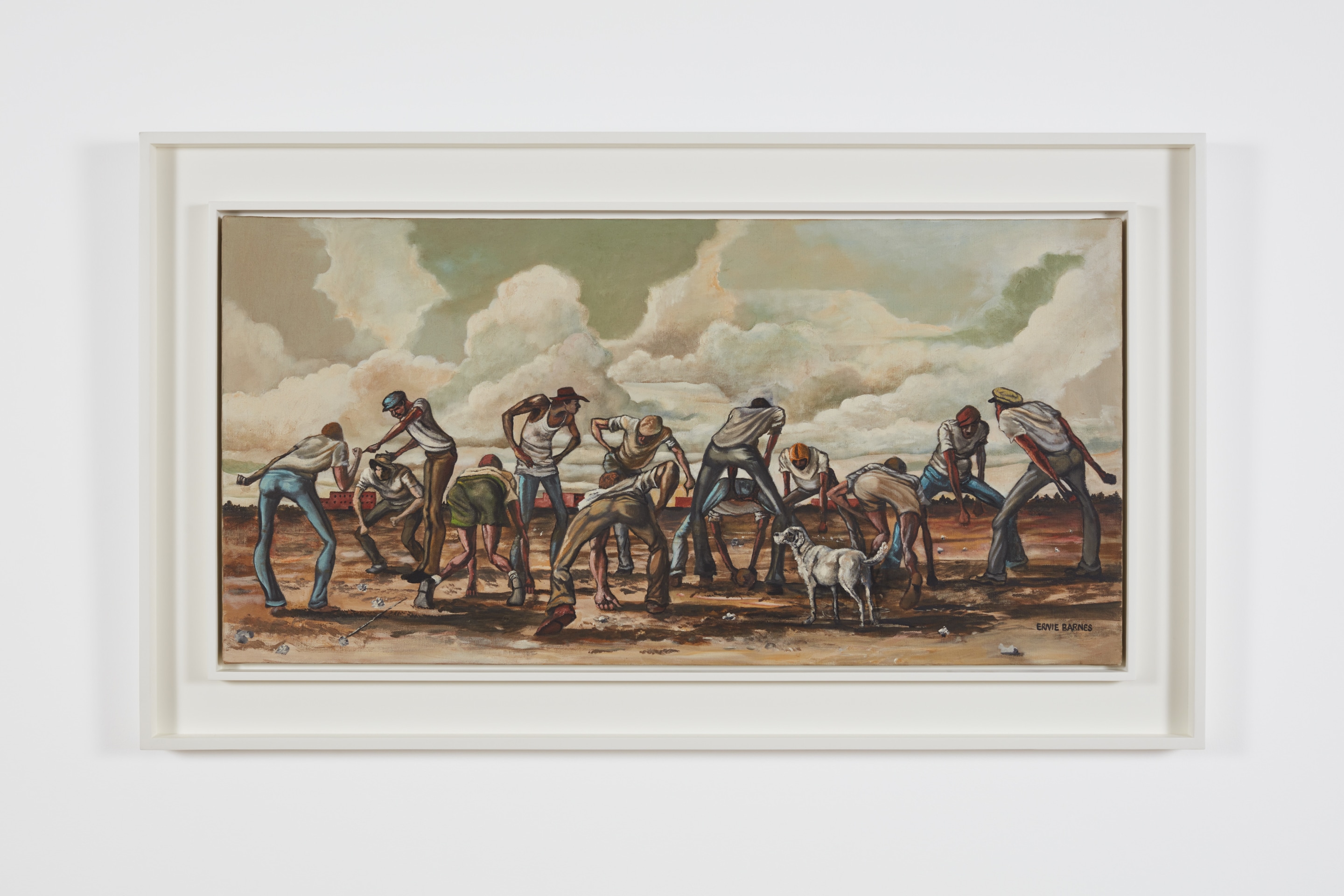 In his paintings, Barnes animates the lyricism of the human body in moments of athleticism and play. Barnes’ sinuous figures were inspired by both the Italian Mannerists and twentieth-century American masters, such as Thomas Hart Benton, Andrew Wyeth, Norman Rockwell, George Bellows and Charles White. Born and raised in Durham, North Carolina, at the height of the Jim Crow era, Barnes’ interest in art was cultivated by his mother, the housekeeper for Durham attorney Frank L. Fuller, Jr. Though segregation barred him from visiting museums as a child, Barnes was able to read art books at Fuller’s home before studying painting at North Carolina Central University (formerly North Carolina College) on a full athletic scholarship.