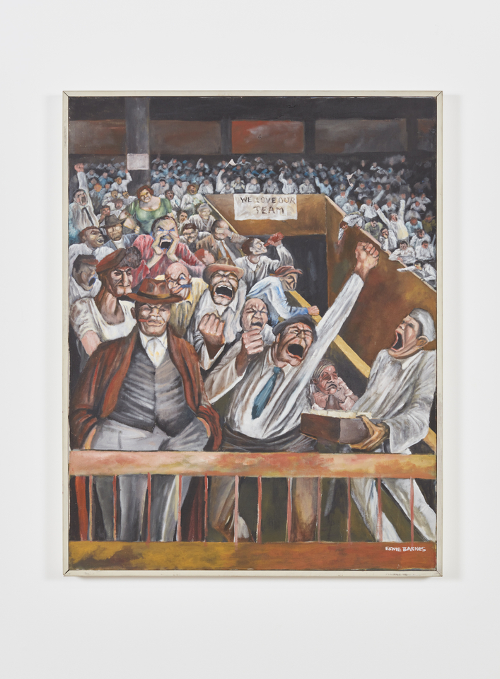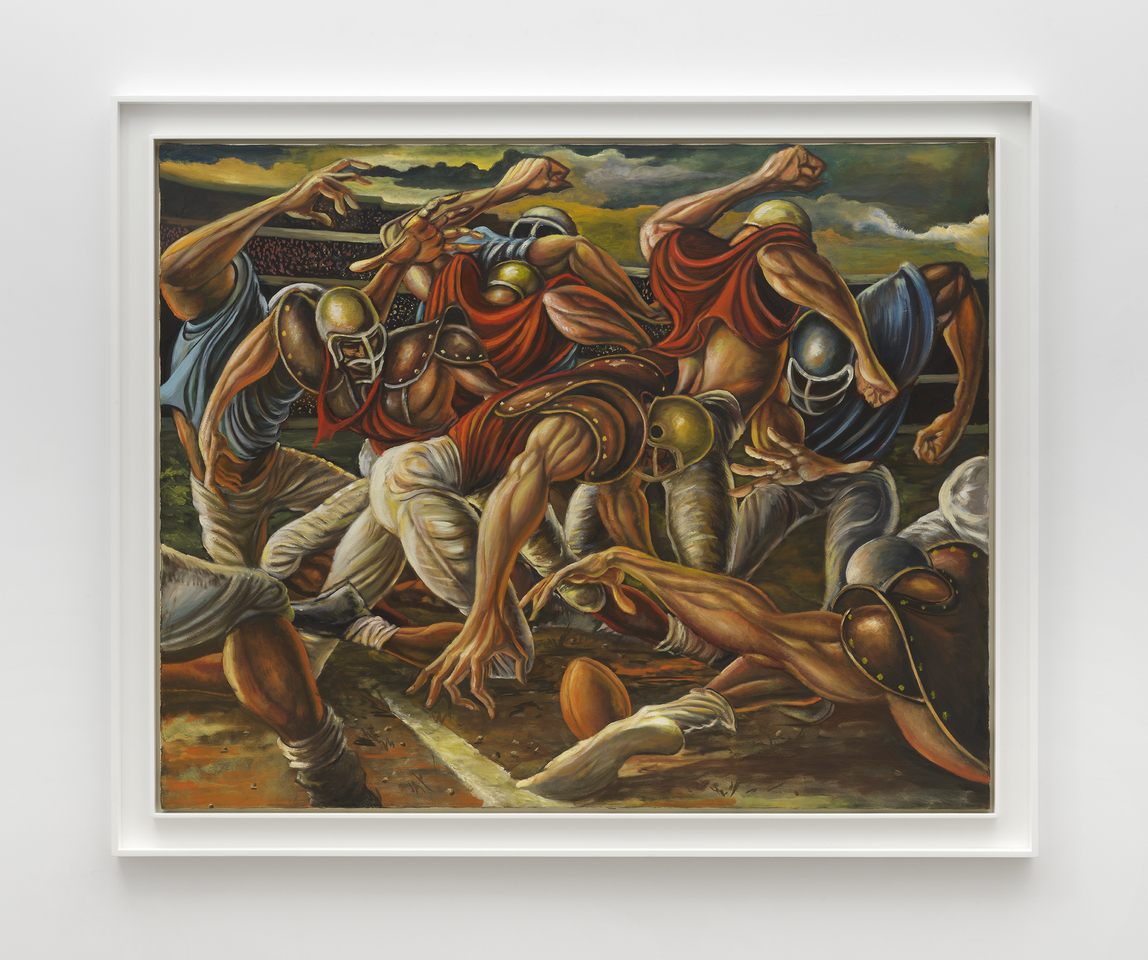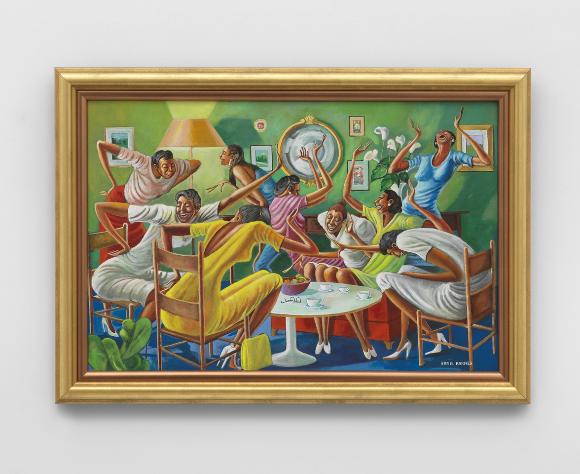 Ernie Barnes (b. 1938, Durham, North Carolina; d. 2009, Los Angeles)’s recent solo exhibitions include “Ernie Barnes: Where Music and Soul Live,” UTA Artist Space, Los Angeles (2023); “Ernie Barnes,” Andrew Kreps Gallery, organized with Ortuzar Projects, New York (2021); “Liberating Humanity from Within,” UTA Artists Space, Los Angeles (2020); “Ernie Barnes: A Retrospective,” California African American Museum, Los Angeles (2019); and “The North Carolina Roots of Artist Ernie Barnes,” North Carolina Museum of History, Raleigh, North Carolina (2018–2019), among others. His work has been featured in institutional survey exhibitions including “Giants: Art from the Dean Collection of Swiss Beatz and Alicia Keys,” Brooklyn Museum, Brooklyn, New York (2024); “Dix and the Present,” Deichtorhallen Hamburg, Hamburg, Germany (2023); “Scrimmage: Football in American Art from The Civil War to The Present,” Figge Museum of Art, Davenport, Iowa and Canton Museum of Art, Canton, Ohio (2017), Jordan Schnitzer Museum of Art, Eugene, Oregon (2016), University Art Museum at Colorado State University, Fort Collins, Colorado (2015); “Visual Voice,” Riverside Art Museum, Riverside, California (2016); “I Got Rhythm: Art & Jazz Since 1920,” Kunstmuseum Stuttgart, Stuttgart, Germany (2015). Barnes’ work is currently held in the permanent collections of the California African American Museum, Los Angeles; Pro Football Hall of Fame, Canton, Ohio; Brigham Young University Museum of Art, Provo, Utah; North Carolina Central University Art Museum, Durham, North Carolina; and the American Sport Art Museum and Archives, Daphne, Alabama, among others.