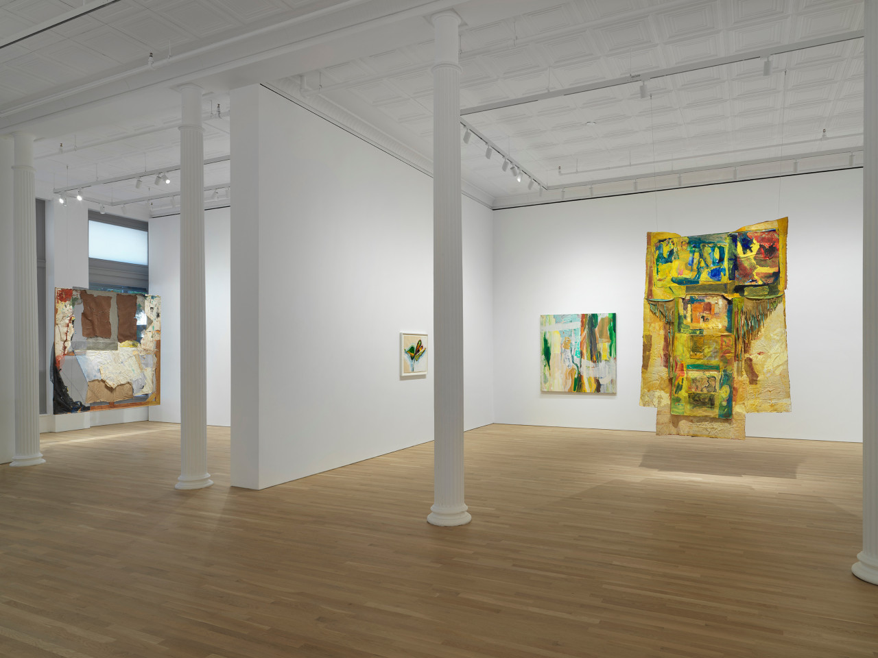 Jackson equates her studio to a compost heap. It is a fitting metaphor, as her recent works break down discarded materials, re-composing them into dynamic, living forms that defy easy interpretation. After moving to Savannah, Georgia in 1996, her work shifted away from the melding of human forms and nature motifs. Instead of the traditional support of a stretched canvas, Jackson began using paper, leading to the development of her “environmental abstractions”––paintings that break free from the wall’s two-dimensionality and engage with the surrounding space of the viewer. Recycling the detritus of daily life, Jackson crumples and assembles materials from her garden, papers and some textiles from her work as a costume and set designer, and found organic matter. While undergoing fundamental formal developments, the arc of Jackson’s six-decade career is characterized as much by its stylistic breaks as by its consistent development upon core conceptual principles. Through the layering of ethereal acrylic glazes and personally significant materials, as well as the blurring of boundaries between the human and inhuman, Jackson’s paintings continually reflect the artist’s attunement to her sense of place within the world.